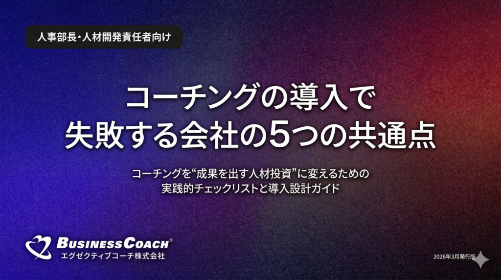 コーチングを“成果を出す人材投資” に変えるための実践的チェックリストと導入設計ガイドです。